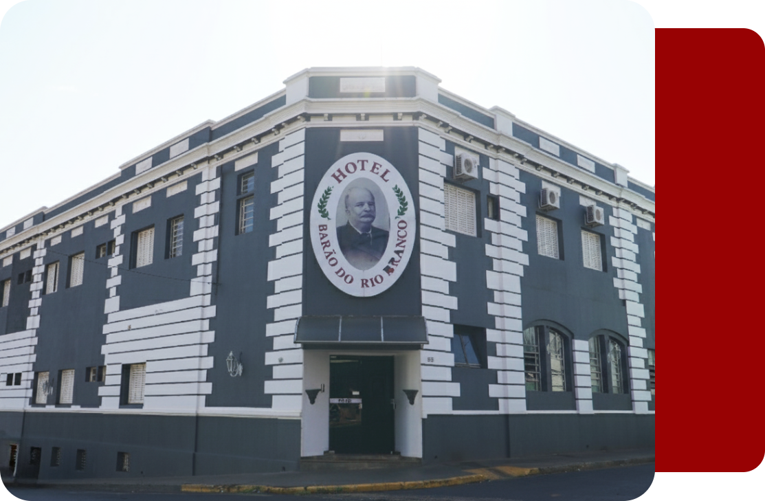 Fundado em 1929, o Hotel Rio Branco é um marco de hospitalidade e tradição em Bebedouro. Com arquitetura charmosa e estrutura moderna, mantém vivo o acolhimento que atravessa gerações. São 45 apartamentos projetados para oferecer conforto, segurança e bem-estar.